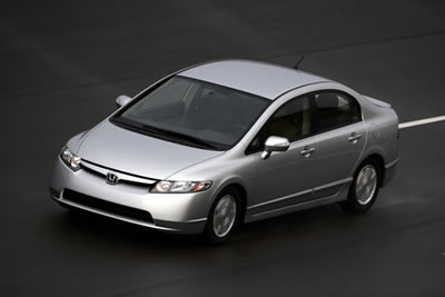Variations on an Automotive Theme: Honda Civic Hybrid, Acura CSX Type SBy Jim Bray What's even better than a garden variety Honda Civic? How about a gas-sipping hybrid or a souped up, luxurious version? The hybrid is a straightforward adaptation of Honda's terrific little sedan, with Honda's Integrated Motor Assist system added on for "even greener" performance. The souped up, more luxurious version is the Canadian-spec Acura CSX Type S, a little rocket that's mostly analogous to the Civic Si sedan, but with different logos, grille, tail light treatment and other goodies thrown in to send the up market Civic a little bit more up market. Green Honda The hybrid Honda is as charming as the regular Civic, though perhaps not quite as much fun as the five speed manual version. Its 1.3 liter gas engine is rated at 93 hp @ 6300 (110 hp @ 6000 with the IMA system) and 89 lb.-ft. of torque @ 4500 (123 @ 1000~2500 with IMA). This compares with the basic gas Civic's 140 hp @ 6300 rpm and 128 lb.-ft. @ 4300 rpm from a 1.8 liter engine. You feel the difference but, since the raison d'être of most hybrids isn't blinding speed, it's undoubtedly an acceptable trade-off. And the CVT (continuously variable transmission) does a good job of maximizing thrust efficiently. The downside for those who want to make a political statement that, by driving a hybrid they're somehow better than the rest of us, is that the hybrid looks mostly like the regular Civic sedan, so (to steal a phrase from South Park) your "smug emissions" may go unnoticed. Honda says the hybrid Civic achieves an EPA-estimated city/highway rating of 40/45 MPG, the highest of any 2008 Honda automotive product. The regular Civic is rated at 26/34/29 (City/Highway/Combined – five speed manual,) and 25/36/29 (automatic). Want better mileage from a Honda? Buy a motorcycle.