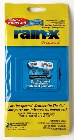 The wipes aren't the only products in the Rain-X arsenal, though they're the only ones I've tried so far. The company also makes the spray-applied Weatherbeater 2-in-1 Glass Cleaner and Rain Repellent, a selection of wiper blades, washes and waxes and some bug and tar products that would come in handy where I live (lots of bugs and constant road construction). The bug and tar stuff comes in an aerosol can and supposedly creates a skin of acrylic polymer to which all the gucky stuff sticks – then it supposedly washes right off, taking the gross little critters and other flotsam and jetsam with it. Rain-X says the product is safe for chrome, metal, paint and plastic.