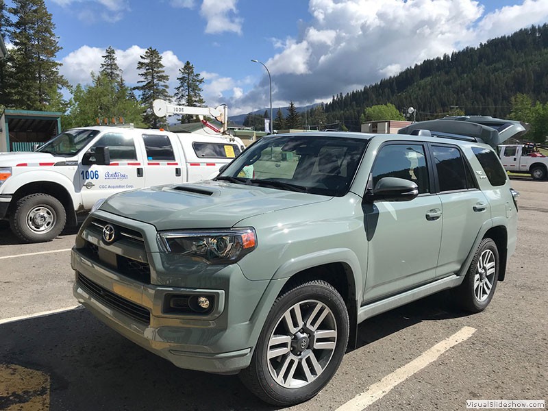 A very dirty 4Runner Swallowing more luggage than we needed Last gas before the People's Republic of British Columbia We reached the Hi-Rock Inn! Alas! The view from The Lamplighter, Elkford's premiere Pub/restaurant The view from our "motel" 4Runner getting ready to leave the Hi-Rock - forever! Outside the Hi-Rock The road looked pretty good at first! But it didn't last... 4Runner in Heaven A dirty bum 4Runner in Heaven again Weary Creek Weary Creek Weary Creek Weary Creek Weary Creek Weary Creek Weary Creek Weary Creek Weary Creek What a view! Blue Lake, about halfway between Elkford and Elk Lake Dirty and, maybe, scratched, but unbowed 4Runner!